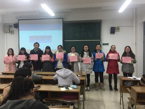 接着,进入了“10月份优秀干事表彰环节”,绩效部的田金玥公布了各个部门的优秀干事名单并邀请优秀干事代表李婷婷、张金娟、刘菁君、黄佳敏上台发言,并为每位优秀干事颁发了奖状和奖品,鼓励大家向优秀干事们学习。