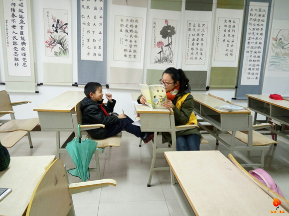 这是第二轮志愿活动的第一周,志愿者们也是第一次来到这个课堂。但出乎负责人意料的是,这次的志愿者在刚开始的生疏后很快便熟悉了一切。她们坐在孩子们的旁边,倾听着他们的问题,指导着他们写作业。有的孩子有一点调皮,不愿意写作业,志愿者也没有不耐烦,而是循循善诱,把他们的注意力转移到作业上来,用具有趣味性的方法来讲解习题。当有孩子完成作业,但家人还没有来接时,志愿者会想办法找来画纸画笔,让这些孩子不会感到无聊。孩子们用稚嫩的笔触画出了充满童趣的图画,这时志愿者在一旁也会一本正经的点评一番。这时孩子的家长恰好进来,看到孩子天真烂漫的笑脸,便会心一笑。临走时,也会轻声道一声谢谢。孩子们的笑脸,家长们感谢就是对志愿者们最大的肯定。