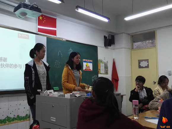 早上九点半,培训会准时开始。同学们都早早准备好纸笔,有的同学启动自带的电脑,等待培训会的到来。首先,上海佰特教育咨询中心的林老师登上讲台。在进行了自我介绍后,首先介绍了阿福童所属的上海佰特教育咨询中心的概况,同时借助图片,为大家展示了该机构在各地开展的活动。接着,林老师正式开始志愿者的课程培训活动。她用每一节课程内容做演示,以“你知道它是谁吗?”导入课程。在与同学讨论后,让孩子们一起画手掌与阿福童形象比较,让每个学生与阿福童建立联系,然后介绍阿福童的八字格言——探索、思考、调查、行动,呼吁每一个同学去用行动改变世界。最后,老师让每一组听讲者根据讲课内容备课后上台演示上课过程,在说完课后组织所有同学点评优劣,让每一个受培训者加强对阿福童课程的理解,授课的能力得到提升。在培训过程中,培训者们认真听讲,并通过自我实践,加深理解在一个又一个游戏与活动中参与课堂、交流互动,在实践与思考中体验轻松愉悦、领会培训宗旨、掌握知识技能、感悟并学习教学方法。在培训中同学们都感受到教育直达内心的效果,这次培训是实践与认识的完美结合,让大家认识到教育的内涵原来如此丰富与广阔,大家都清晰地认识到现在要面临的工作是把这种理念传递与推广,让孩子们也有更深入的认识。