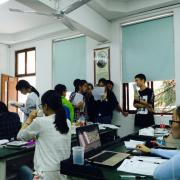 的学子们在苏州市第十中学的见习活动进入尾声,十位大三学子按时到达十中子冈楼的办公室内,为最后一天的见习活动做着准备工作。