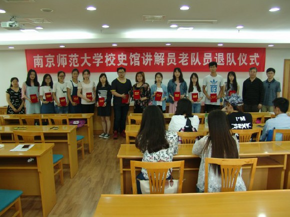 6月7日下午,档案馆、校团委在仙林校区厚生楼339会议室举行南京师范大学校史馆讲解队老队员退队仪式。档案馆馆长高锋、校团委副书记周伟、档案馆副馆长薛艳出席了会议。学校校史馆讲解队全体成员参加了会议。会议由档案馆薛艳副馆长主持。