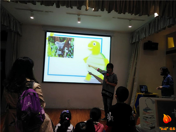 活动开始,志愿者播放PPT并伴随自我介绍“大家好,我们是南京师范大学的志愿者”小朋友们渐渐被吸引过来,纷纷端正的坐在板凳上好奇听着志愿者们。开始时候,志愿者先以有趣的猜谜语环节为开端,调动孩子们的积极性。小朋友们思维十分敏捷,争相回答,并获得了志愿者的小奖励。接着,志愿者从之前谜底的植物动物渐渐入题,问孩子们是否知道人类是由什么进化而来的,一个小朋友大声回答道“类人猿。”接着志愿者便以PPT展现方式生动形象的展示达尔文的进化论。小朋友们都满怀期待的听着。志愿者还特地为小朋友们准备了关于达尔文小时候成长故事的动画,因为志愿者电脑型号与活动基地的型号不符无法在大屏幕上播放,两位志愿者只好站在中央一个人托着电脑,一个人用麦克风放在出声口让小朋友听得更加清楚,颇为辛苦。看完动画后,志愿者问小朋友们的理想梦想是什么。有的人回答是做一个能够做很多很多不同口味和样式的冰淇淋家。有的人回答是厨师,有的人是消防员。自己小朋友们在描述自己的梦想蓝图时那认真的态度和渴望的眼神十分可爱。