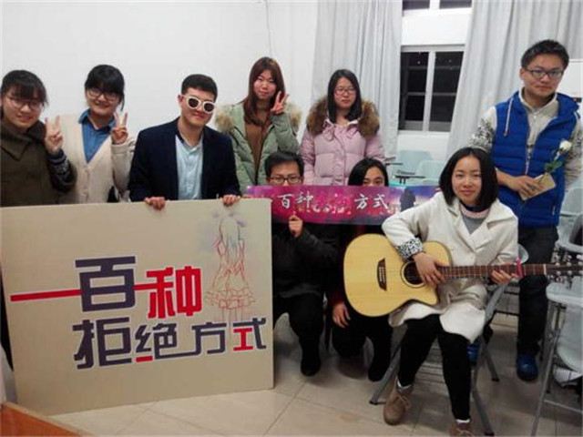 因此我社感到任重而道远,小伙伴们积极活跃的准备了表白情景剧,该剧由编剧倪佩玉亲自编写,社长何可导演,另有八名社员参演。