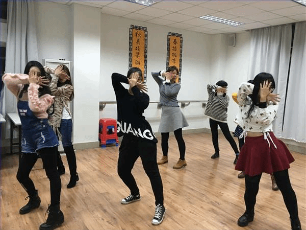 热身活动结束后,给大家看了几个风格不同的舞蹈视频,挑选出了大家一致好评的1Million舞蹈工作室May J Lee导师编舞的《Superstar》。这支舞的动作融合了爵士和HipHop,对于温柔的女生来说会有一定的难度。但是好在节奏并不是非常快,开头的动作比较简单,相对于新手也比较容易接受和上手。我们先将舞蹈的分解动作按照拍子进行教学和动作讲解,慢慢的加快动作,方便记忆和动作的梳理。然后跳了几遍等大家都熟悉动作就开始跟着音乐一起跳。开始大家并不能很好的跟上动作,因为和以前学习的舞蹈风格不同,所以就尽量在每一遍跳完都将做的不够好的动作进行指正和练习,期间大家认真学习也不时的开开玩笑来放松大家的心情,所以最后的学习效果也非常不错,将舞蹈的开头部分完整的学习了下来,也跳出了各自不同的风格。