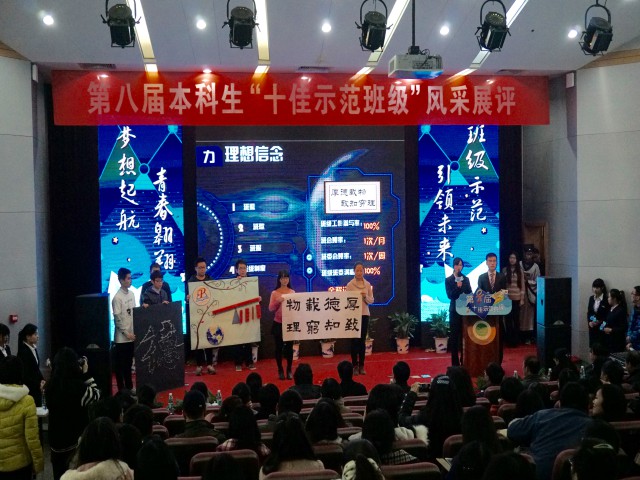 汉语言文学1301班和物理师范1307班过关斩将,进入决赛环节。德育、文化、学风,多元建设、立德树人,汉语言文学1301班和物理师范1307班在此次十佳班级评比中发扬特色,出色地展示了班级风采,受到与会领导老师的一致好评。