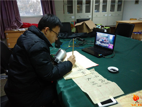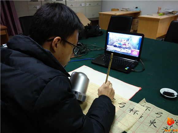 12月9日下午,在化成楼222办公室,来自南京师范大学书法篆刻协会的老朋友王宁康给边远地区的孩子们上了一堂别开生面的书法课。