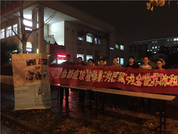 红十字会举办的“Pray for Paris”活动在西区大学生活动中心前如期举行,该活动大约持续了40分钟左右。本次活动是为被恐怖分子袭击的巴黎祈福,也是对恐怖主义的痛斥与谴责,更是对世界和平的一种期许。