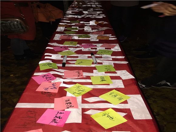 活动结束后,拿着满满签名的红色横幅,每个干事脸上都洋溢着灿烂的笑容,温暖了这个下着雨的冬季傍晚。