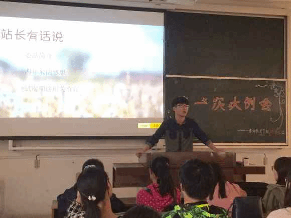 接下来站长张青上台演讲,内容主要包括三部分,第一是心站简介,为我们介绍了“德馨”心站的主要职责以及内部结构和分工。第二是其两年来的感想,关于他“德馨”心站工作两年对心站与成员的感情,体现了心站内像个大家庭的氛围。第三是在试用期的相关事宜,关于一个月内新进干事的考核事项与考核标准。其语言诙谐赢得满堂喝彩,还加深了新进干事的归属感。