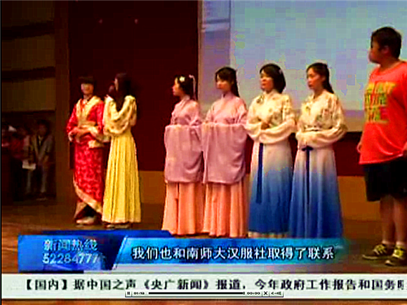 同时,活动现场更有江宁新闻综合频道的记者全程录像,并对热爱的同学进行了采访,将此次活动作为晚间新闻播出,使得更多的人们认识和了解汉服,为汉文化的推广提供了良好的平台和极佳的机会。