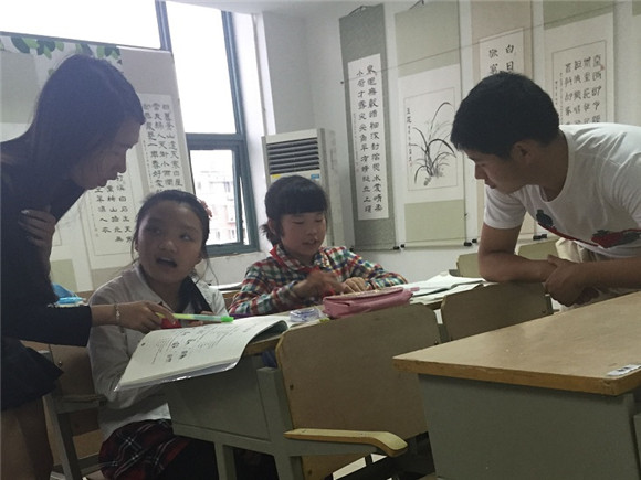 随着时间的流逝,越来越多的孩子涌入了教室,也有越来越多的孩子写完了作业。其中一个已经写完作业的孩子拿出了五子棋,要和志愿者玩起来,引来了一帮孩子围观。但是就连没有写完作业的孩子也忍不住凑过来看热闹,影响了课堂纪律,于是志愿者们立即要求孩子们回到座位上,并把五子棋收好了不再拿出来。