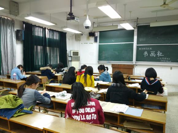 品艺书画社迎来了开学以来的第三次社团活动——基本的毛笔字练习。今天社长有幸请了13级书法系的李兰若学姐来给大家做指导,因为前些天的清明节,活动暂停了一次,所以同学们对即将进行的书法练习也满怀激动。