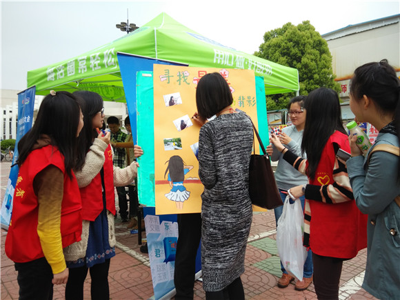 的五名志愿者在项目部负责人的带领下来到南京师范大学西区食堂旁,进行了“寻找最美读书身影”活动。