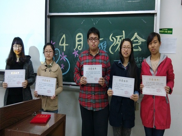 会议伊始,由张青同学颁发优秀心员和优秀干事的奖状,对在过去一学期中工作态度积极认真且有着突出表现的心站成员予以表彰。接着是优秀干事代表徐邦菲进行发言,她与大家分享自己的工作经验,并激励所有心站成员端正工作态度,齐心协力,用心建设心站,她的精彩发言赢得了大家阵阵掌声!会议下一环节,张青同学针对心站近期工作的得与失进行了总结,他希望心站成员能够积极带头参与心站举办的活动,包括阳光心灵知识竞赛、电影沙龙等,然后,他又对下个月工作进行了规划与安排,强调下个月的工作重点是举办情景剧大赛和心理小讲堂两项活动,要求大家积极宣传,积极参与。最后,副站长薛梓文同学就晴雨表的上交问题作出了进一步的安排与强化,提醒心员们一定要及时上交晴雨表。