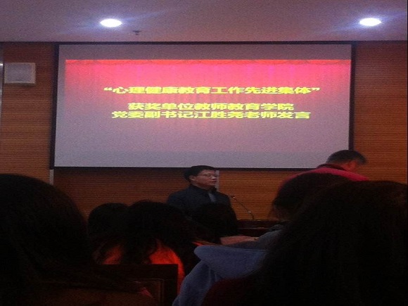在心理健康教育工作中表现突出,成绩突出,被评为“心理健康教育工作先进集体”,教师院“德馨”心理气象站被评为“优秀心理气象站”,翟云秋老师被评为心理健康教育工作先进个人,钱莉、王梦琪等同学被评为优秀心理气象员。其后,学校领导为先进集体和个人颁奖,以资鼓励。