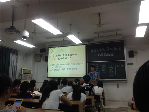 9月28日晚,南京师范大学书法篆刻协会会长黄洁组织社员开展了一次新生见面会活动。