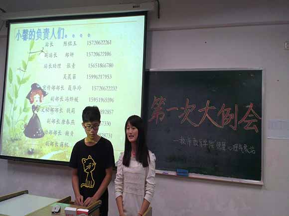 会议伊始,心站站长陈铭玉、副站长郑妍分别致辞,对过去一学期心站成员的辛勤付出表示肯定与感谢,并对心站新成员表示欢迎与期待。其后,13级心理气象员代表薛梓文同学对心理气象员的含义作出了阐释,分享了自己的心得收获,并希望心理气象员能与心站紧密联系,相互促进,共同发展,为教师院广大学生服务。