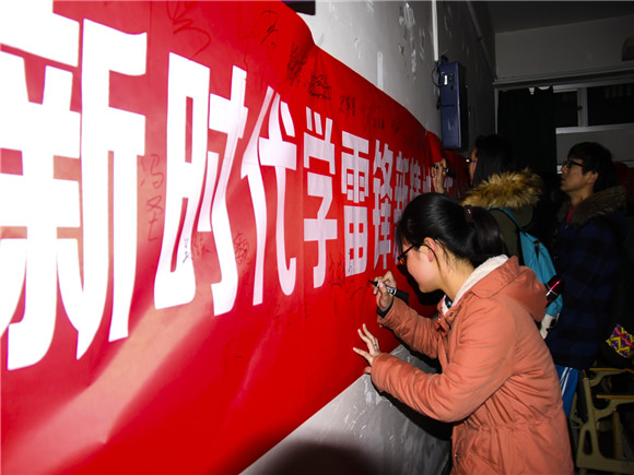 活动结束后,大家都积极主动地在标有“新时代学雷锋新精神,新社会树核心价值观”的横幅上签上了自己的名字,每个人都充满了热情与决心,虔诚地写下自己的名字,纷纷表示被那种一心向善,乐于助人,无论过去多久都会不改变的高尚精神深深的打动,也明确了自己学习雷锋精神,践行社会主义核心价值观的决心。此刻,承雷锋精神,行核心价值观,建设和谐社会的伟大责任铭记在了每个师范生的心间。