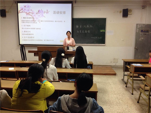 由于部分14级社员参加院内的讲座,准时出席见面会的只有一部分社员。活动开始后,社长王嘉怿同学先对新社员的加入表示欢迎,并介绍了社团的大致情况、社团负责人的联系方式,并希望社员能够加入社团QQ群,在群中相互认识交流,共同讨论汉服,结交朋友。接下来,社长简单介绍了本学期的活动构想,包括汉服形制讲解、发展历史讲解、汉服导购、制作手工发饰、汉舞教学、穿汉服踏青拍照等等,让社员简单了解社团活动的主要方向。随后,社长与社员商定了活动时间与频率,最后决定隔周一次活动,活动时间定为每周日下午4:30。社团制度确认后,社长又请每一位社员写下自己期望的社团活动,以及目前对汉服的了解等,方便社长更快的熟悉社员的想法。在见面会的最后,社长和社员分别介绍了自己,希望日后能够在社团活动当中愉快相处。