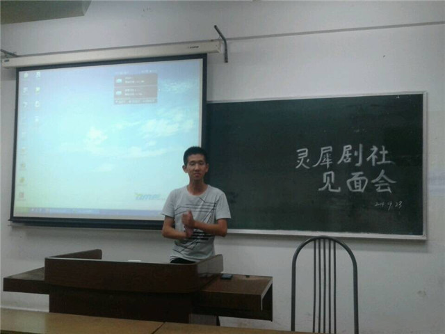 在紧张且又有序的社团招新工作圆满结束之后,社团管理中心的灵犀剧社开始了新一轮的活动——社团新老见面会。当晚剧社的新成员悉数到场,气氛热情洋溢,他们代表着剧社的新生力量和未来。由于见习时间安排的问题,老成员并未全数到场,而是由剧社的主要负责人与新成员举行见面。剧社社长吴天浩主持了本次会议,副社长王嘉怿在会上进行发言。