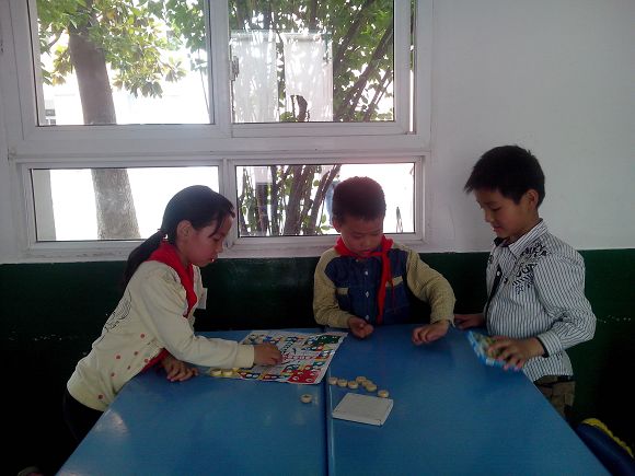 孩子们都非常地天真可爱,一进教室就亲切地和志愿者姐姐打招呼,找到座位后就坐下来开始写作业,不懂的就主动询问,志愿者们也都认真解答。等到托管课堂的孩子们作业写得差不多了,志愿者们就拿出五子棋和飞行棋教他们下棋。