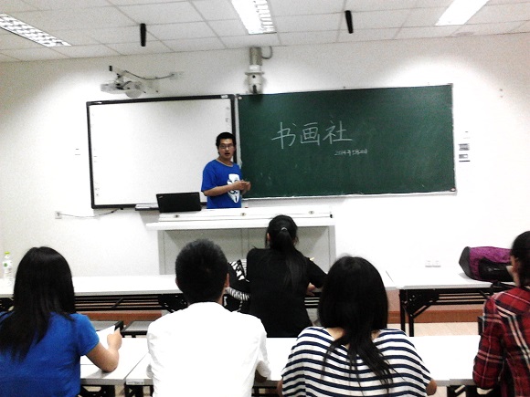 2014年5月21日晚,品艺书画社书法练习活动在仙林校区学明楼五楼第七微格教室成功举办。此次活动以加深社员们对书法的认识,进一步精进社员的粉笔字为目的。大部分社员走到黑板前,拿起手中的粉笔进行练习,活动取得了圆满成功。