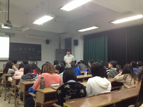 本次心理小讲堂的主讲人为13级英语师范的心理气象员孙林林、夏倩倩与13级物理师范的心理气象员朱磊、贾雨柔,他们凭借幽默的谈吐、生动的展示,为同学们带来一场别开生面的心理知识课,令同学们在轻松愉快的氛围中掌握心理学的小知识。