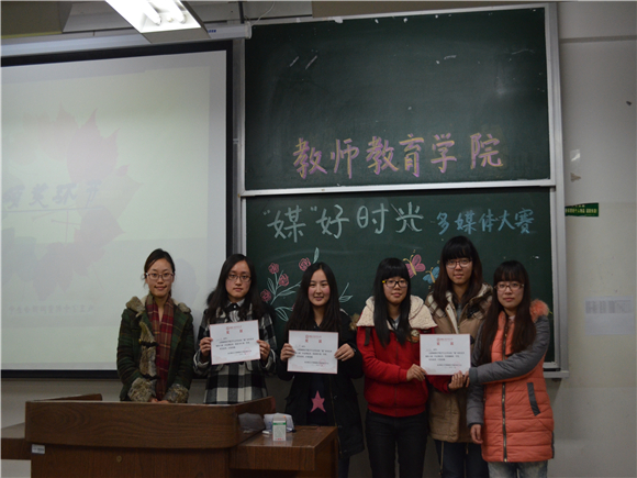 学生会新闻宣传中心精心主办的“媒”好时光多媒体大赛在仙林校区学正楼307教室圆满结束。来自教师院2012级辅导员孔晖老师等五位专业评委及二十余位选手参加了此次比赛,此外还有三十六位大众评委参加了本次比赛。