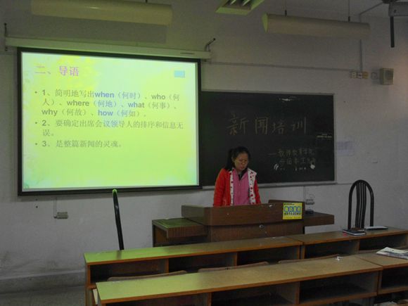 然后是由12级的干事蒋涵林给大家全面的总结了新闻稿写作的要求和一些注意点。蒋涵林同学浅显易懂的语言便将新闻写作的基本要求明确地传达给了13级的新干事,并分别从标题,语言,结构以及意义方面详细介绍了新闻稿的正确格式和内容。她还重点强调了有关语言文字的处理技巧,既不能枯燥乏味,也不能过于精于文采,浑然天成,大巧若拙才是一篇真正出色的新闻稿。接下来12级的其他干事也一一上台交流了在宣传部的一年多里摸索出来的写新闻稿的一些经验。
