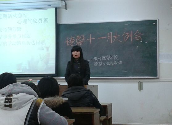 “德馨”心理气象站在南京师范大学仙林校区学明楼207教室召开十一月大例会,站内工作人员和13级心理气象员均准时出席。
