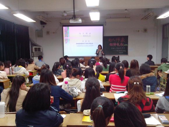 学生会大学生发展中心承办的为人师表——教师礼仪讲座在学明楼303圆满举办。主讲人姜晶花老师从礼的基本原则、礼仪惯例、仪表礼仪等几方面为教师院的同学详细讲解了教师在礼仪方面所要注意的问题,现场气氛浓烈,同学们不时报以热烈的掌声。