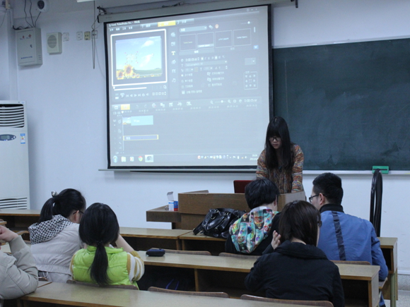 陈薇同学首先大致给大家介绍了绘声绘影,她说:“这其实是一款操作很简单的软件,大家只要认真练习,就一定可以成为视频制作高手!”简单的一句话立即打消了很多社员积在心中的顾虑,于是,他们学习的热情更加高涨了。接下来,陈薇同学分别针对绘声绘影软件的界面组成部分、常用的编辑功能以及怎么插入字幕、怎么添加转场效果、怎么更好地使用滤镜功能等大家关心的问题进行了详尽讲解,在场的社员都觉得收获很多,不虚此行。下一个要讲解的就是GoldWave了。这款软件也是平常大家很有可能会用得到的,所以,陈薇同学也从界面组成部分、常用编辑功能等角度做了详细介绍。听完后,所有社员都相信自己一定可以亲手剪辑一段自己喜欢的手机铃声,不仅如此,对于一些更加高级的功能社员们也表示很愿意去尝试和练习。