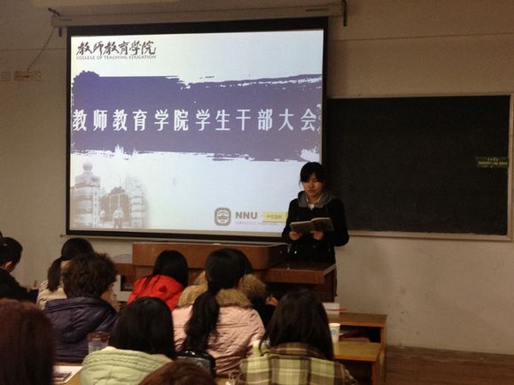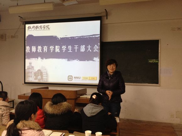 分团委、学生会、志愿者协会与心理气象站四大组织的学生干部参加会议,教师院党委副书记朱冬梅老师、院团委书记支景老师、辅导员李晓亮与翟云秋老师出席。会议贝娜同学主持。