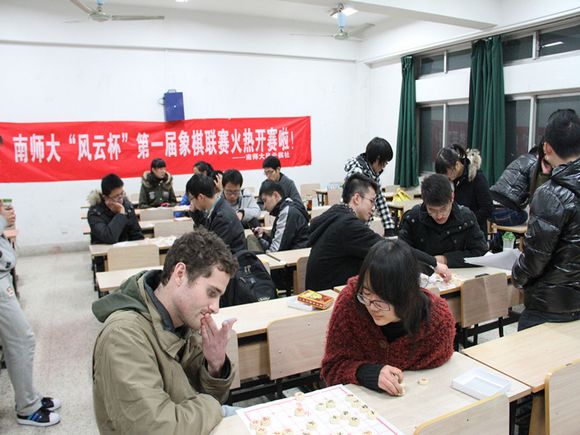 为继承中华民族优秀文化遗产,提高我校大学生道德素质与文化修养,进一步丰富大学校园文化生活,南师大社团联合会和南师大风云棋社联合举办了第一届南师大“风云杯”象棋联赛。此次比赛历时一个多月,在校团委、社联、社团、院学生会等的多方合作下,获得了巨大反响和一直好评。