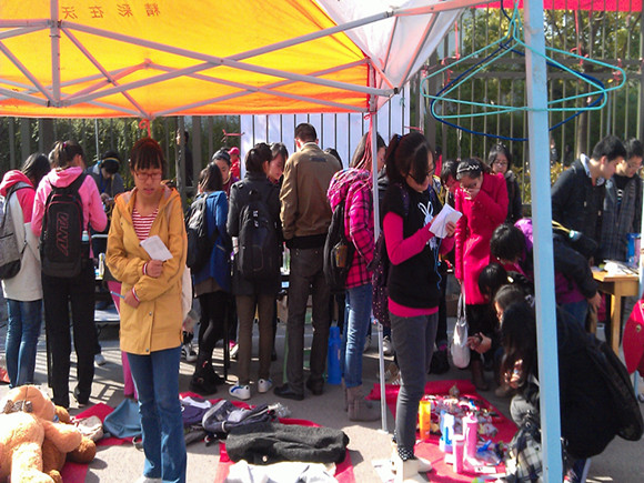 11月14日上午十时,第六届跳蚤市场在仙林校区东区篮球场火热开场。整个活动中,气氛热烈非凡,人流络绎不绝。同学们奔走在跳蚤市场中,热切地寻找着属于自己的那件“宝物”。