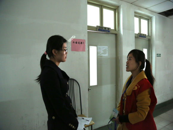 16日下午一点,志愿者们就早早来到了随园音乐厅,协助准备当天下午的开幕式工作。四点左右,各校参赛选手和指导老师陆续抵达,志愿者们热情地为其引座。大部分选手和老师因初到南京,对随园周围的交通情况还不太了解,志愿者们便耐心细致地为他们一一说明。开幕式结束后,不少志愿者看天色较晚,还主动为参赛选手和老师们带路。由于志愿者们的热情接待,当天下午,大部分志愿者就与参赛选手和老师们建立了友谊,为第二天赛事工作的顺利进行打下了基础。