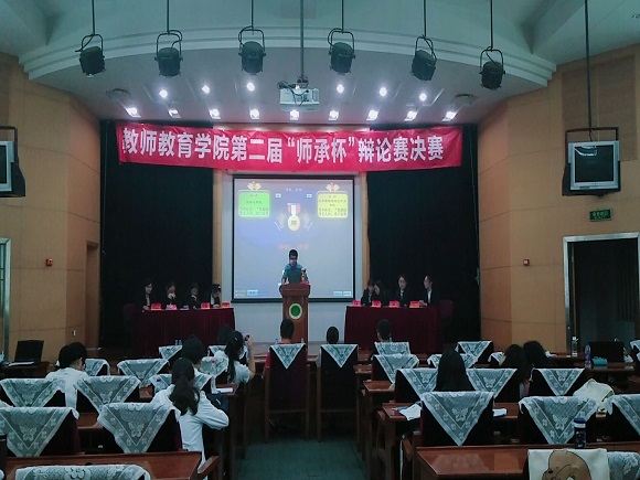第二届师承杯总决赛在仙林校区敬文图书馆二楼西报告厅圆满落幕。本场主席为张余瑞阳,莅临本赛的评委分别为:16级辅导员过超老师;外国语学院辩论队13级队长,南京师范大学辩论队13级队长陈书琪;生科院辩论队15级队长,南京师范大学辩论队15级队长陈杨;外国语学院辩论队15级队长,南京师范大学辩论队15级副队长肖玥;商学院辩论队15级队长,南京师范大学辩论队15级优秀辩手汪静枫;商学院辩论队15级副队长,南京师范大学辩协15级主席吴思源。正方为无知之幕队,反方为大爷带着他的三个少女队。双方就“当今社会,‘英雄枯骨无人问,戏子家事天下知’是真命题还是伪命题?”展开了激烈的辩论。