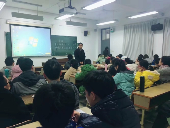 1月2日下午,16级化学师范班在学明409召开了期末述职大会暨换届班会,会议的主要内容是通知期末考试日程安排,各班委总结学年工作,班委满意度调查及团支书的换届选举。班会由班长孙境泽主持,辅导员过超指导,全体同学积极参与。