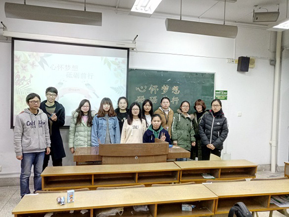 此次活动由班级心理气象员张乔如同学主持,分为四个阶段。首先,心怀梦想。张乔如介绍了此次团辅的主题--心怀梦想,砥砺前行,希望同学们在繁忙的学习生活中仍能回顾一下自己是否还记得当初的梦想,又是否还为之继续努力着。随后,主持人带着大家玩了两个小游戏“记忆考验”、“拍七令”,同学们都积极参与,计师人数不多,但现场气氛逐渐也活跃起来,团辅活动也在这种和谐欢快的氛围中继续下去。接着,坚守梦想。主持人介绍了何为梦想:梦想,是对未来的一种期望,是一种让你感到坚持就是幸福的东西,甚至其可以视为一种信仰。随后,李敏婕同学说了她关于梦想的理解以及她的梦想,正如她所说:梦想就是很努力想要去实现的事情。班长王诗和同学也说:梦想,是我们前行的动力,是我们对美好未来的向往和想象,没有梦想的人生,是不完整的。然后,砥砺前行。全体同学一起观看了影片《I have a dream》中的一些片段:为了黑人自由他勇于发声,鼓舞了人民用于追求自由于是才有了现在的宣扬人人平等的美国。最后,活动进入尾声,主持人也对此次活动做了总结词,并愿每个人都满怀梦想,砥砺前行,愿你有一个灿烂的前程,愿你有情人终成眷属,愿你在尘世获的幸福,愿面朝大海, 春暖花开。