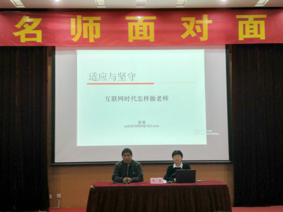 11月4日,南京师范大学17级物理师范班的同学们有幸聆听了南京市委教育工委副书记夏莹老师的“名师面对面”课堂。本次课堂的开展地点在南京师范大学敬文图书馆二楼东学术报告一厅,课堂主题是:适应与坚守——互联网时代怎样做老师。