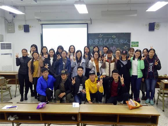 16级地理师范班在仙林校区学明楼314教室开展“欣赏自己欣赏他人,走向成功”团辅活动。此次活动由16级地理师范班心理气象员崔磊、罗寅昊同学策划主持、宣传委员赵学研拍摄宣传和副班长何钰婷采购游戏礼品,16级地理师范班全体成员参与。