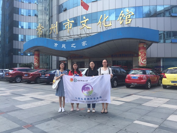 当日一早,吟诵小队的成员们前往常州文化馆并对吟诵的传承现状进行调研学习。常州吟诵,又名吟诵调,是常州的传统音乐形式。常州吟诵的基本内容相当丰富和全面,主要有吟诗的音调,吟词的音调及文言文的音调等。在走访文化馆的时候,成员们了解到常州吟诵在进入近代之际渐趋式微,由于赵元任先生的研究和相关人员的及时采录,让常州吟诵具有坚实的保护、传承基础。然而,在成员们采访文化馆工作人员中了解到,现今常州吟诵的传承人均已进入耄耋之年,参与常州吟诵活动的也较多为老年人。吟诵的进一步传承仍然需要和现代社会相融合,从而让其焕发出新的生机。