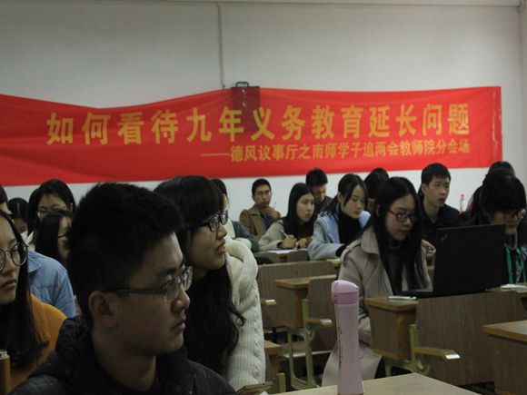 3月15日下午,两会圆满落幕,涉及国计民生的提案屡受热议,其中教育问题是一直是民众关心的焦点,今年也不例外,教育公平、家庭教育、教材编写都是本届两会的热词,我校宋永忠书记则提出建议现在学前教育已经发展成熟,可以纳入义务教育,更重要的还应尽早出台一部“学前教育法”。应学工处“南师学子追两会” 系列活动号召,教师院于15日下午3点在仙林校区学明楼404教室承办“南师学子追两会”之德风议事厅分会场,旨在参与国家时政要点讨论,学习传播两会知识,发挥师范生党员先锋模范作用,进一步丰富支部生活。
