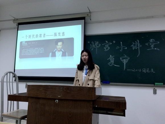 4月7日晚上,在学正楼209教室, 2016级年系团总支成员对通过前两次复审的同学们进行了第三次复审。这次复审与前两次形式相同,旨在以同学上台试讲的方式对同学们完善后的的讲座材料进行审核,并且对时长等进行了具体的要求对比;同时基于同学们前两次复审中的问题,指出他们的进步,以及仍然存在的不足,以便他们在将来的讲座中表现得更好。