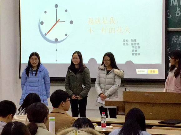 决赛伊始,徐思和雷鹏两位主持人为决赛致辞,并为参赛选手们讲解了比赛规则和时间限制。比赛过程中,九支参赛队伍经过精心准备,以生动形象的方式呈现了解决心理问题的不同方式:高冷端庄斯人傲娇五人组通过三大方面组织内容,条理清晰,逻辑性强;梦中惊鸿队具体解释,一人讲解,其他小组成员现场表演,针对小吴的心理状态,展现了个别交谈法、心理咨询、转移兴趣等5种方法;欢乐五小只队以一段介绍背景故事的剪辑视频作为开场,接着现场展示了心理健康教育咨询中心的场景;贝尔爱吃冰淇淋队则试图通过开展班级活动来解决问题……在这些精彩万分的展示中,有几个小队的表现尤其让人印象深刻——我们说的都队带来了生动的情景展现,以此传达“找准自己的目标,不要因为嫉妒心而忽略真实自我”的主题思想,让人印象深刻的是他们准备了画有表情的纸张作为道具,两位队员专门负责内心独白,准备十分充分;驸马公主和他们的仆人说的都队则分别展现小吴与家长、同学和老师的交谈场景,接着再由一位组员从理论上具体分析案例中小吴的心理问题的根源,继而提出可行的解决手段,由浅入深,层次鲜明;心灵奇缘队则颇有想象力地采用童话设定,通过一个约定让案例中的梁某放下嫉妒心,趣味十足;月亮派我治愈你队首先熄灯,利用黑暗中PPT上闪烁不定的星光塑造氛围,并通过女声独白点明主题“嫉妒是摧毁心灵的毒药”,动人的背景音乐带动全场情绪,此后,该组一边通过心理辅导的现场模拟,一边通过PPT将心理辅导方式理论化,给观众和评委以深刻印象;治愈系美少女队分别搭建了篮球场、家中和心理咨询室三个场景,表演过程中“当年我跳舞,现在只能跳广场舞”等诙谐有趣又发人深省的语言引发全场笑声,一时掌声雷动。