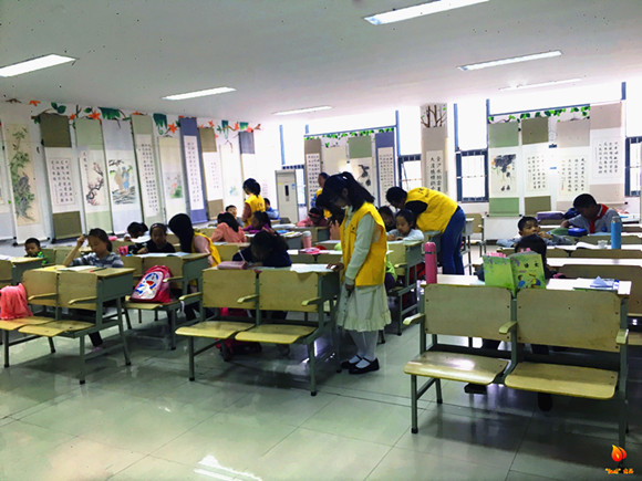 伴随着一声声老师,孩子们陆续到达教室,开始了课后时光。对于有些淘气的,不愿写作业的孩子,志愿者们耐心劝导,以生动有趣的方法讲解题目,唤起孩子们对学习的热情。当然,当志愿者遇到了他们不太了解的知识点,他们也会互相讨论或者上网查询,为给孩子们最准确,最适合他们的解答。