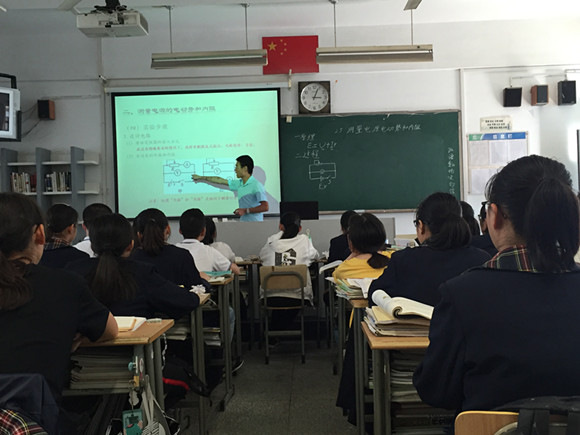 本节课的内容是“学生实验:测量电源的电动势与电阻”。首先,上课前两分钟,小组成员进入教室进行课前准备,成员的学科指导老师以及班主任指导老师顾荣清老师也坐在教室后排。上课开始以后,小组成员在帮助学生充分复习上节课的内容的情况下,顺利导入新课的内容,在上课过程中,该成员娴熟的利用多媒体等工具进行知识的传授,结合PPT的课件以及板书帮助学生快速了解新课的知识点。在该小组成员的充分准备下,课堂气氛十分活跃,丝毫没有让学生感觉到理论课程的枯燥,让学生积极参与到各个问题的探究中,小组成员利用一些循序渐进的小问题帮助学生主动寻找问题的答案,从而使得学生对于知识点的掌握起点较高。