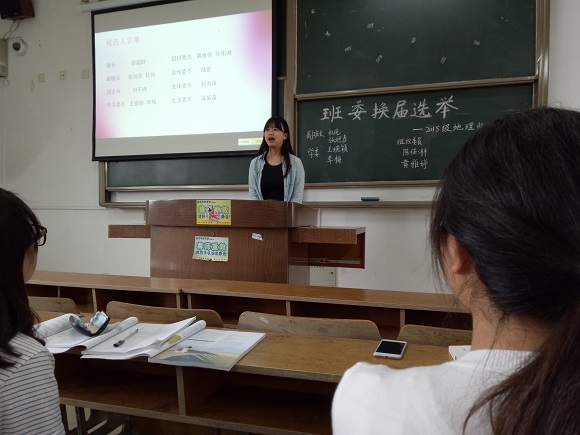 二是转专业新来的五位同学以及新疆石河子学校来交换生的介绍。每一位上台介绍的同学都面带微笑,介绍虽然简单,但是总结一下,几位新同学都表达了的相同的想法就是“能够融入我们这一集体,并且能够共同把班级建设好,为班级出一份力。”大家都回应以热烈的掌声,这也表现了大家对新同学的认可和为能够共建一个积极进取的班级体的信心和决心。