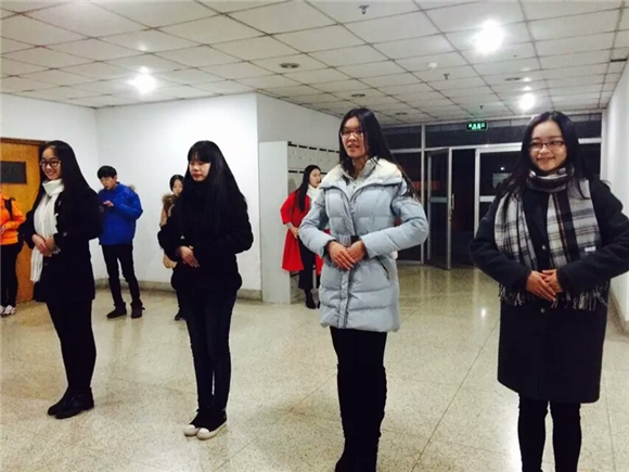 时值深冬,厚重的大衣也低御不了刺骨的寒意,许多同学被冻地直跺脚。为了调节场内气氛,工作人员特意设计了趣味游戏。同学们都积极参与,场内一下子充满了欢声笑语。