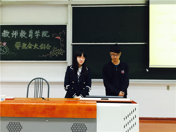 学生会主席杨楚玢对本月学生会的工作做了总结,并对辛苦工作的各位成员进行了表扬,同时希望15级的新干事们能再接再厉,做好本职工作,为博彩网址大全